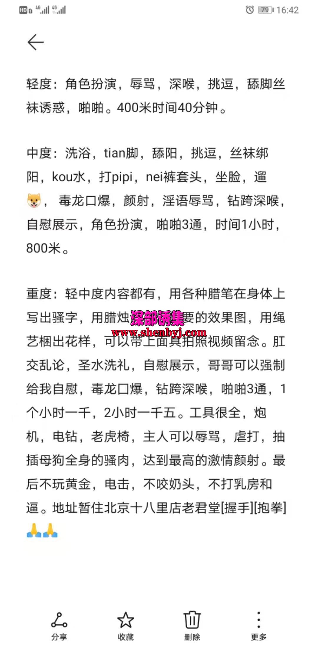 这是我们车队的一个老哥找到的资源,妹子在百子湾这边,自己租的房子,一个人,很安全。我周五晚上约得,妹 ...
