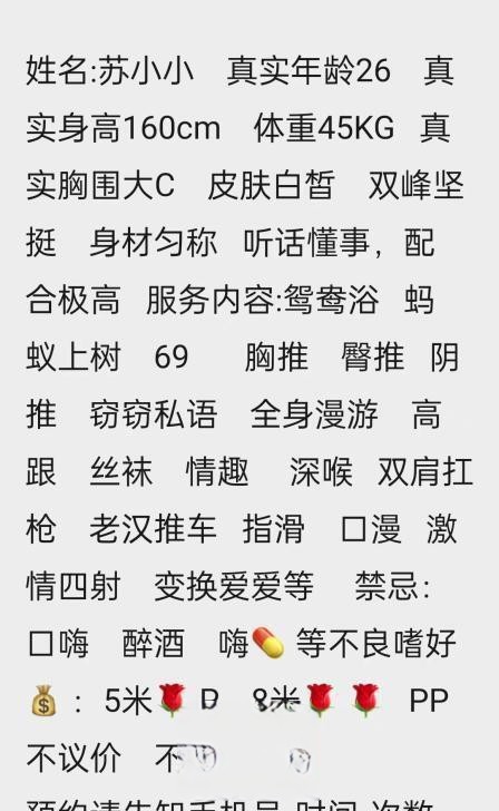 朋友介绍的妹子,服务很仔细,特别是口活厉害,也很会聊天,不会让你感觉到冷场,身材微胖刚刚好,在附近的 ...